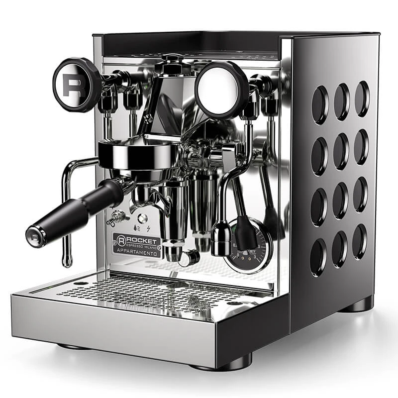 Die Rocket Espresso Appartamento TCA ist eine hochwertige Espressomaschine, die mit einer leistungsstarken Vibrationspumpe ausgestattet ist. Diese sorgt für einen konstanten Druck und damit für eine perfekte Extraktion des Kaffees. Der Betriebsdruck des Heizkessels lässt sich in Stufen 0,9 Bar bis 1,2 Bar ( In 0,1 Bar-Schritten) einstellen und ist werkseitig auf 1 Bar eingestellt. So kann man die Maschine präzise auf die eigenen Bedürfnisse abstimmen und den perfekten Espresso zubereiten. Der Heizkessel ist beschichtet und hat ein Volumen von 1,8 Liter. 2,5 Liter Volumen hat der eingebaute Wassertank – genug um mehrere Shots nacheinander zuzubereiten.