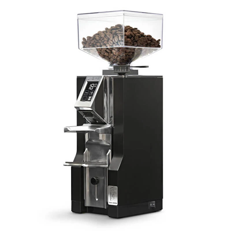 Natürlich ist neben der neusten Technologie auch wichtig, die Mühle gut bedienen zu können. Dank des intuitiven Touch – Displays ist dies kein Problem. Es lässt sich zwischen Einzel- und Doppelportionen wählen, und auch andere Einstellungen sind schnell und einfach zu treffen! Die Metallgabel an der Mignon Libra 16 CR lässt sich schnell einstellen und ermöglicht, dass jeder Siebträger mit der Wiegetechnik verwendet werden kann. Die Mignon Libra verfügt über ein 55 m Scheibenmahlwerk mit einer Produktivität von 1,4 – 1,8 g/ s. Eureka hat extra ein Anti – Klumpen und Elektrostatik System eingebaut, sodass das Mahlwerk stets sauber ist und das Mahlgut homogen. Die Silent Technology sorgt für ein besonders ruhiges Mahlen, höchstens 65 dB werden erreicht.