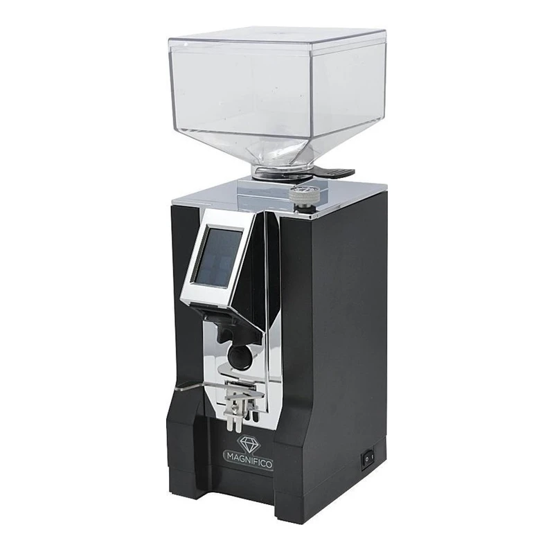 Die Eureka Mignon Magnifico ist Teil der beliebten Mignon-Familie aus der florentiner Kaffeemühlenmanufaktur Eureka. Das Modell Magnifico zeichnet sich vor allem durch zuverlässig gute Mahlergebnisse und eine besonders hohe Langlebigkeit aus, da die 55 mm Diamond-Inside-Mahlscheiben einer speziellen Tiefentemperaturbehandlung unterzogen werden. Die Digitalsteuerung mit zwei programmierbaren Timern sorgt darüber hinaus für ein hohes Maß an Bedienfreundlichkeit.