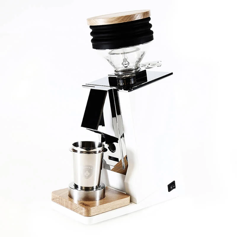 Zum 100. Jubiläum der Gründung in Florenz hat Eureka 2020 die Linie Oro ins Leben gerufen. Oro (italienisch für Gold) bezeichnet die Premiummarke von Eureka mit besonders hochwertigen und langlebigen Mühlen. Auch die Mignon Single Dose gehört der Oro Reihe an. Das robuste Gehäuse im modernen Design und die formschönen Teile aus Eichenholz sorgen für ein edles Äußeres. Im Inneren der Mühle sorgt der kräftige Wechselstrommotor mit 1650 Umdrehungen pro Minute und die speziell behandelten Diamond Inside Mahlscheiben für eine besondere Langlebigkeit. Durch die Silent Technologie ist die Mignon Single Dose trotz ihrer Leistung erstaunlich leise.