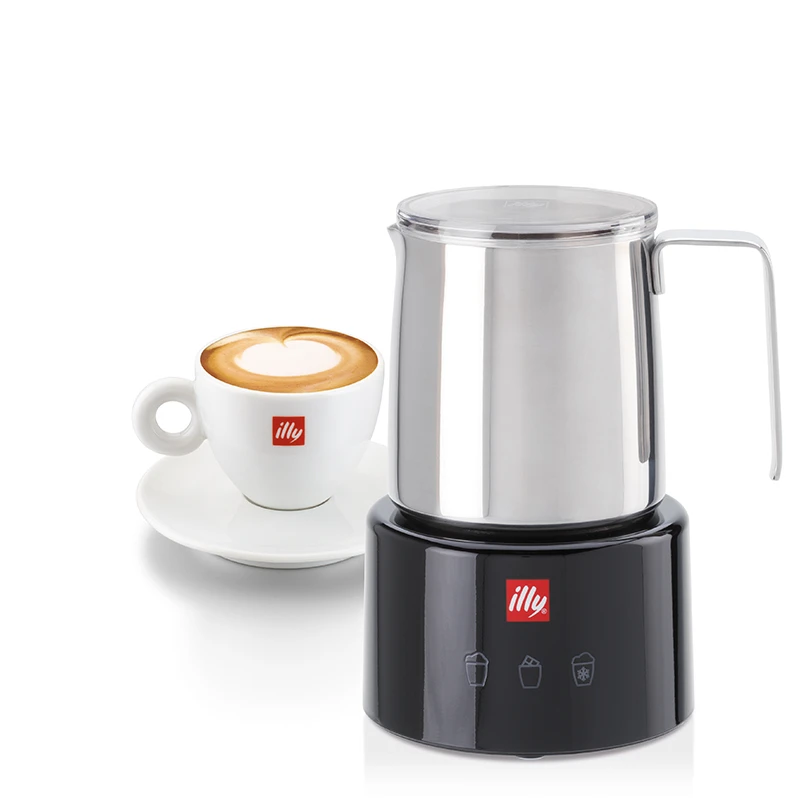 Entdecken Sie den Milchaufschäumer von illy, designed von dem italienischen Designer und Art Direktor Piero Lissoni. Der Milchaufschäumer ist das perfekte Zubehör für alle Kaffeeliebhaber:innen! Mit diesem Gerät können Sie Ihre Kaffeerezepte auf eine ganz neue Stufe bringen. Egal, ob Sie heißen Milchschaum, kalten Milchschaum, heiße ungeschäumte Milch oder heiße Schokolade bevorzugen – der illy Milchaufschäumer zaubert Ihnen in Sekundenschnelle den perfekten Milchschaum. Doch nicht nur die Funktionalität des Geräts überzeugt – auch das exklusive und attraktive Design wird Sie begeistern. Der Milchaufschäumer von illy ist ein echter Blickfang in jeder Küche und wird garantiert zum Highlight Ihrer Kaffeepause. Bedienbar ist der Milchaufschäumer über drei Touch-Bedienungselemente.