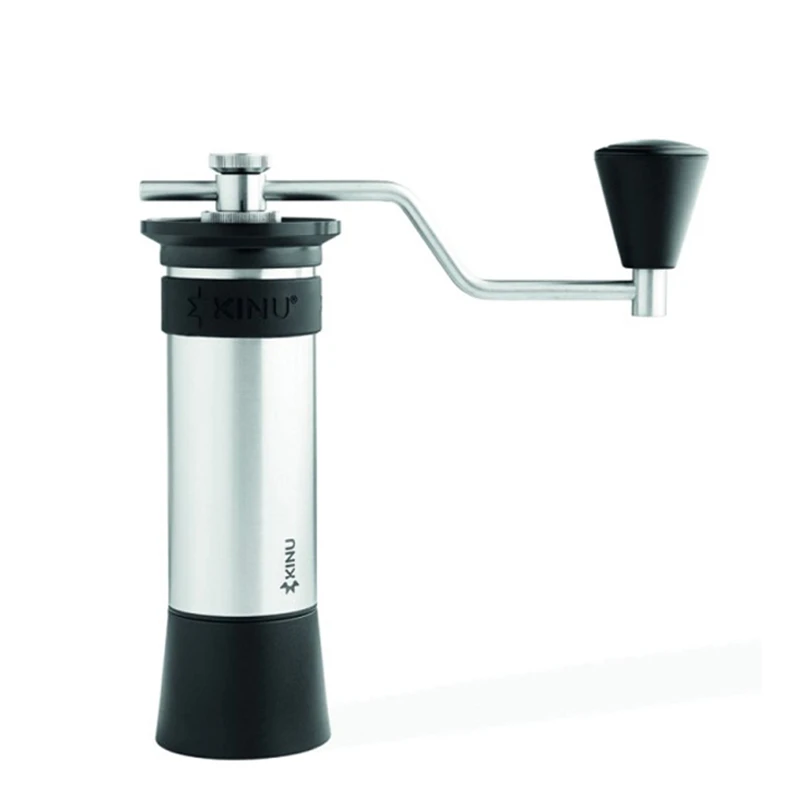 Das Mahlwerk der Edelstahlmühle kann sehr präzise an den perfekten Mahlgrad angepasst werden. Das Feingewinde erlaubt eine Justierung in 0,01 mm, welche stufenlos vorgenommen werden kann. Der Kurbelknauf, sowie die Edelstahlachse sind jeweils doppelt Kugelgelagert, um ein höchstkomfortables Vermahlen zu ermöglichen. Für einen Doubleshot Espresso benötigt diese Mühle nur etwa 30-40 Sekunden. Das praktische Case, in dem die Kinu geliefert wird, schützt die Mühle auf Reisen zuverlässig vor Beschädigungen.