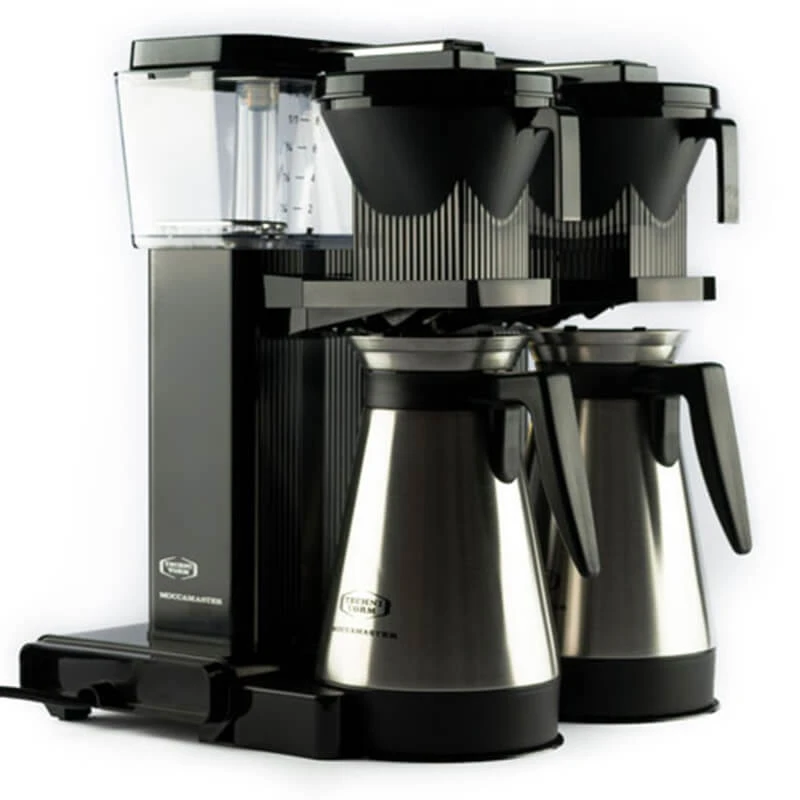 Die Moccamaster KBGT 20 kommt hier als doppelte Ausführung der KGBT 741 daher und bietet somit die doppelte Kaffeemenge. Jede Kanne kann dabei auch separat in Gebrauch genommen werden. Ideal für Büros, Arztpraxen oder Restaurants, wo größere Mengen frisch gebrühten Kaffees benötigt werden. Das hochwertige Kupferheizelement erreicht eine Brühtemperatur von 92°-96°C. Der Kaffee hat somit die perfekte Temperatur für einen leckeren Filterkaffee. Steht eine Besprechung an oder kommen viele Gäste, so brüht die Moccamaster KBGT 20 in 6min ganze 20 Tassen. Und ganze 160 Tassen in einer Stunde, wenn innerhalb dieser Zeit der Kaffeedurst schnell gestillt werden muss. Die Moccamaster in der doppelten Ausführung brüht dabei extrem leise trotz ihrer 2900 Watt Leistung.