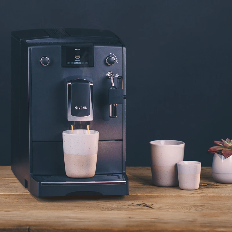 Alle voreingestellten Rezepte des Nivona NICR 550 können individuell an eigene Vorlieben angepasst werden. Die Reinigungsprogramme des Vollautomaten laufen automatisiert ab. Für eine gründliche Reinigung ist die Brüheinheit entnehmbar. Zudem bietet das TFT-Display eine gute Übersicht und ermöglicht so ein leichtes und intuitives bedienen. 15 Bar Pumpendruck sorgen für ein optimales Extraktionsergebnis.
