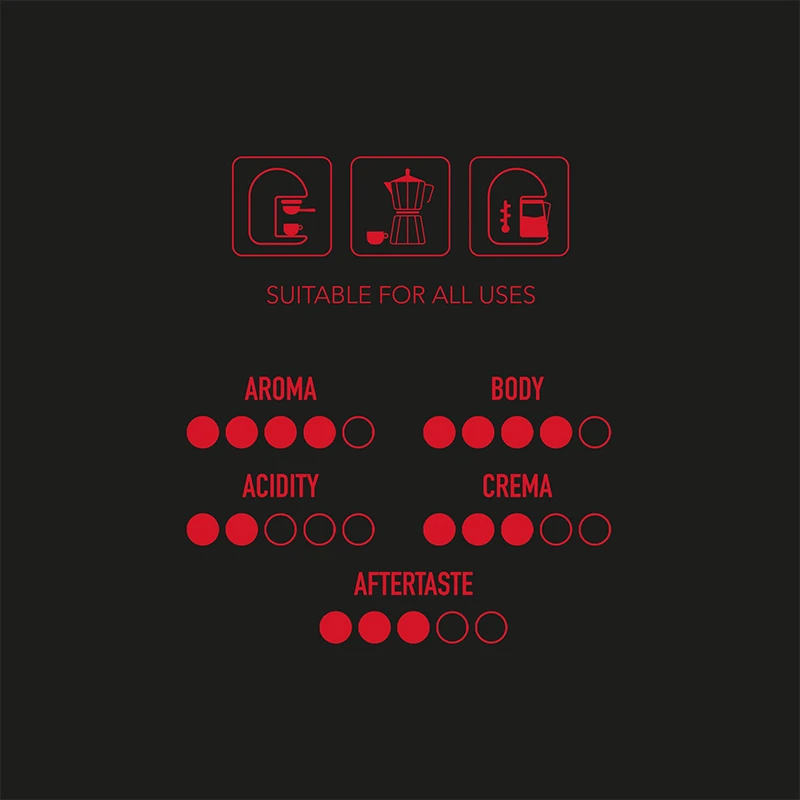 Der Rossino N.4 Caffè Americano ist ein mittelstark gerösteter Filterkaffee mit 60 % Arabica und 40 % Robusta Bohnen Anteil. Die Bohnen stammen aus Asien, Zentral- und Südamerika. Der Filterkaffee von Mikah hat ein duftendes Aroma mit einem süßen, aber dennoch delikatem Geschmack. Der Säuregehalt wurde hier reduziert und macht sich somit perfekt als amerikanischer Filterkaffee.